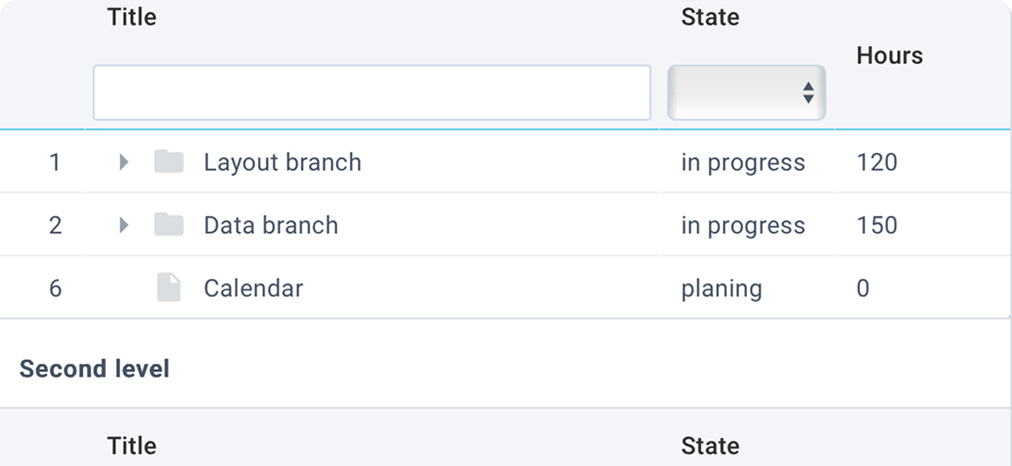 TreeTable for working with hierarchical data in a tree UI