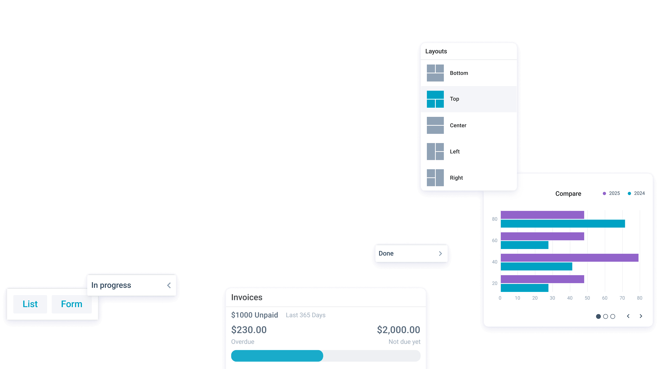Webix layout widgets make the structure of dashboards, admin panels, and multi-page applications clear and adaptable.